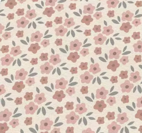 Ce motif floral délicat, composé de petites fleurs roses sur un fond clair, évoque la douceur et la féminité.